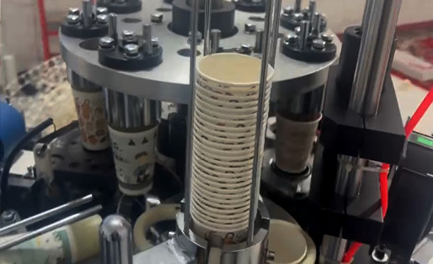 شکل دهی لیوان: کاغذ توسط دستگاه به شکل لیوان در آمده و لبه های آن در این مرحله به هم چسبانده می شود.